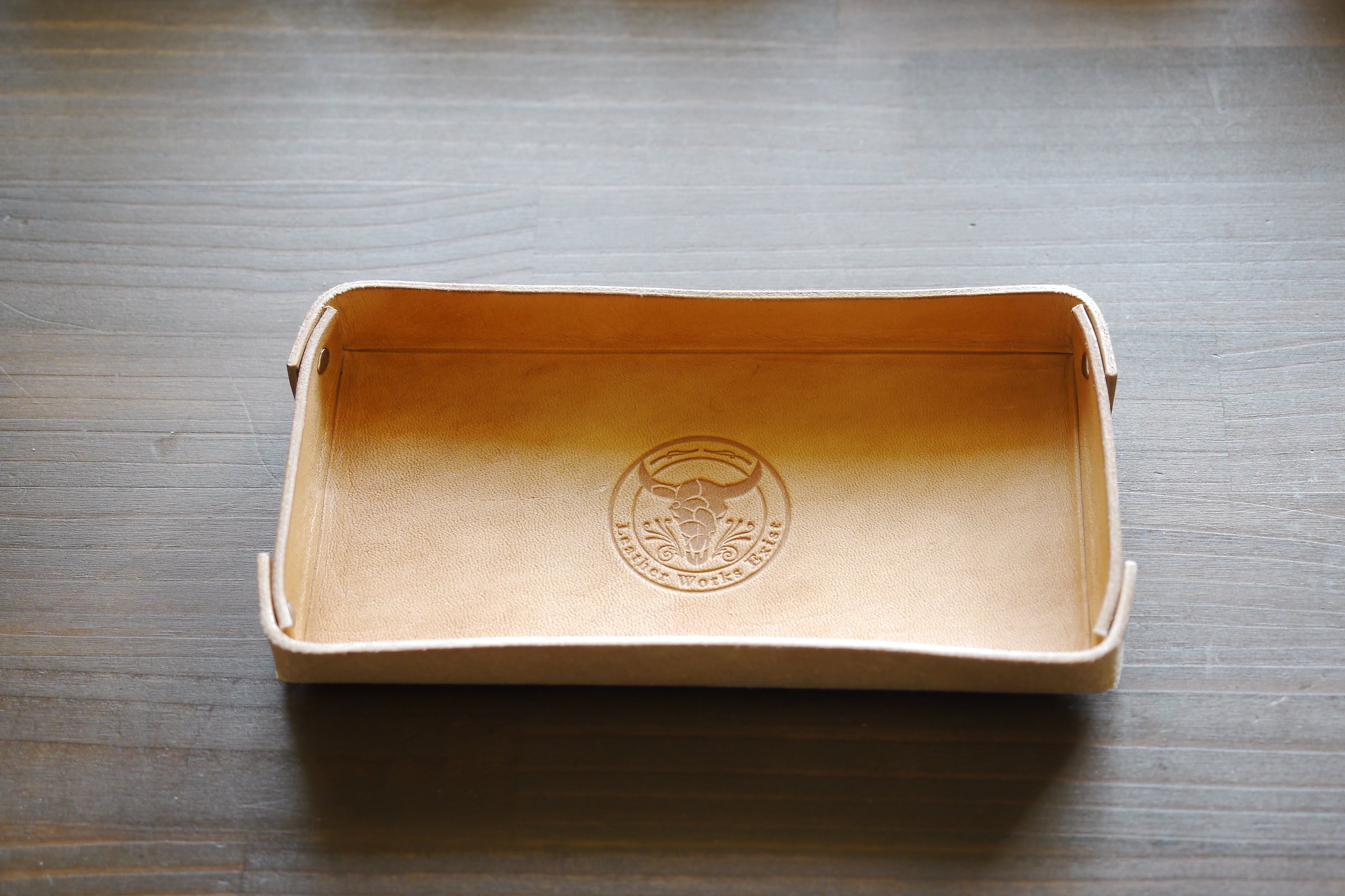 本製品は、一枚革を贅沢に使用し、カシメ止めで仕上げたシンプルなレザートレイです。革本来の風合いを活かし、使い込むほどに深みのある色合いへと変化するため、長く愛用いただけます。