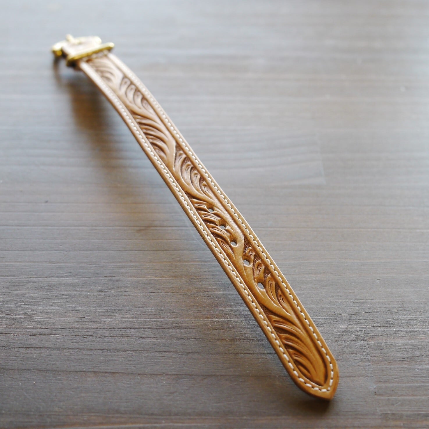 その中になんと幅1cmの中にレザーカービングを施しています!